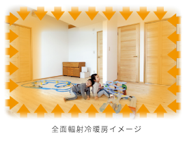 全館空調システムは一般的な冷暖房器具とは違い、壁や床、天井が暖まることによる輻射熱によりポカポカと暖かい空間が実現します。