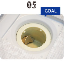 排水ピースを歯ブラシで優しく洗います。※分解しないでください。
