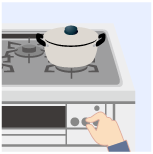 3分経過後に赤いランプの点滅が止まったらガスが使用できます。