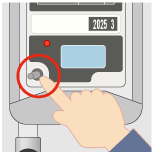 ガスメーターの復帰ボタンのキャップを外し、しっかり押して、ランプが点滅したらゆっくり手を離します。