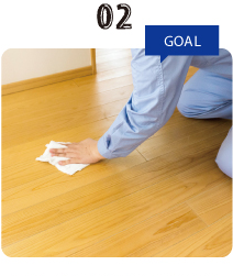 (01)に浸した雑巾を固く絞って汚れを拭き取ります。