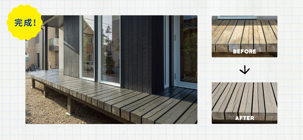 色褪せて汚れてきたウッドデッキをキレイにして、思い出そのままに快適な住まいへ!